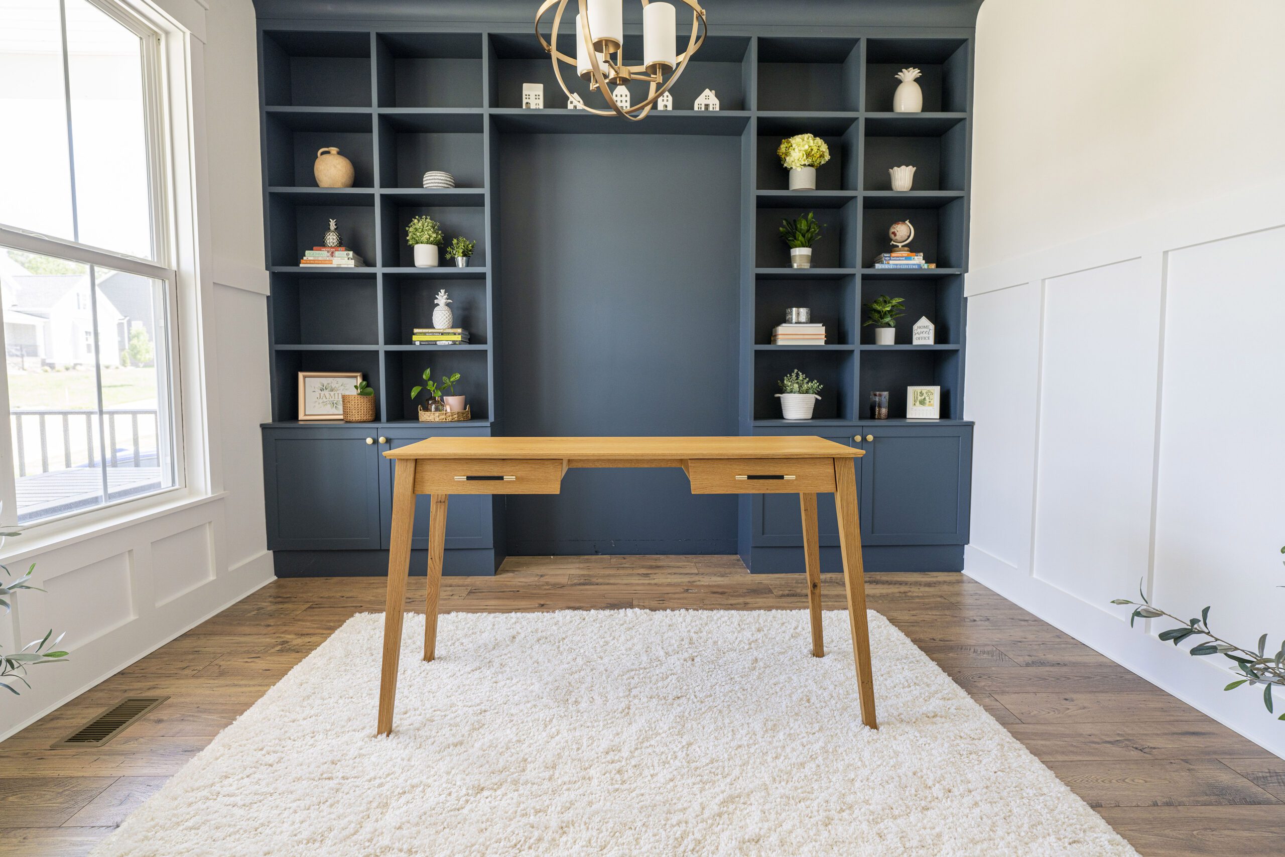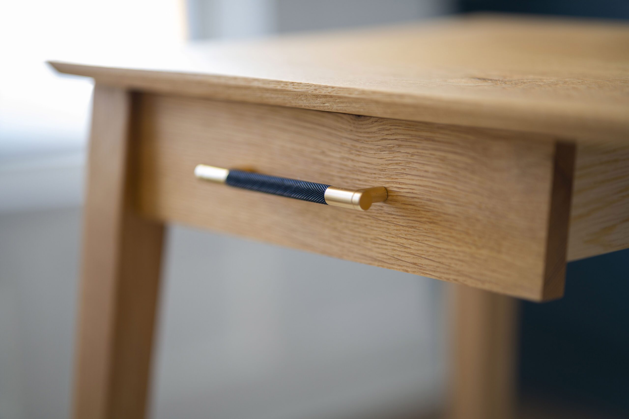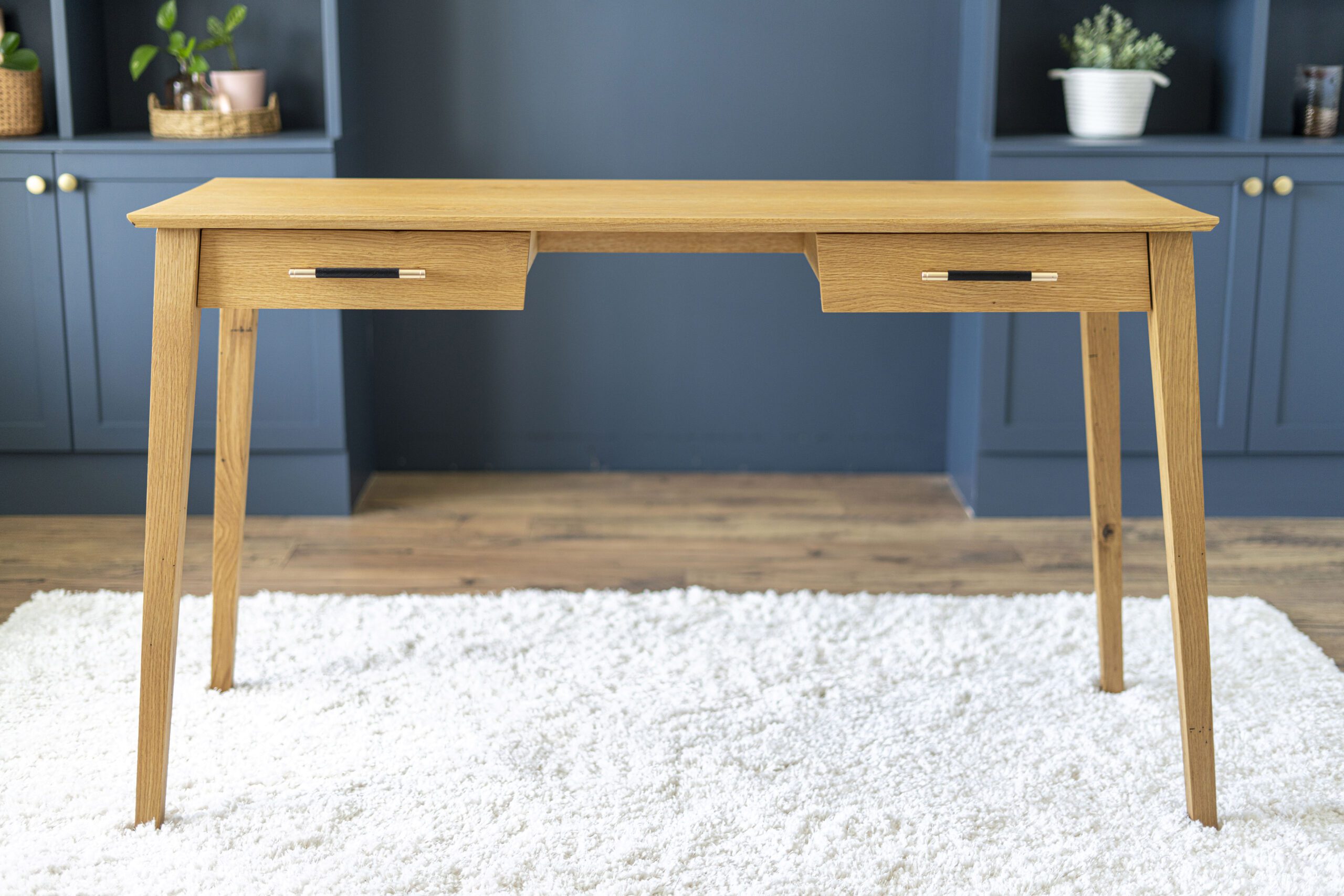 I named this custom desk after my wife because I built it just for her. She wanted something delicate and beautiful with enough strength to hold up over to years. I used rift sawn white oak with brass hardware. There’s some complicated geometry with the legs elevating the custom desk just enough to make it stand out from simple straight legs on standard desks.